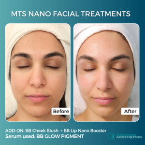 MTS-Nano Infusion is a surface-level skin treatment using ultra-fine nano-needles to gently deliver BB Glow pigment serums and customized active serums into the outer layer of the skin. This treatment provides an instant radiant finish while improving hydration, texture, and overall skin health.